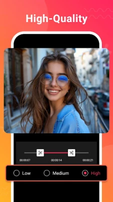 - Compress video of all sizes with high quality.