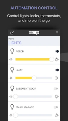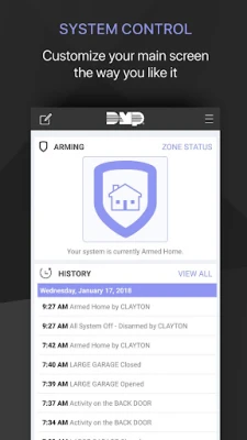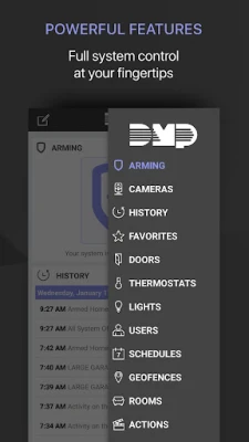 The app requires a compatible control panel and connected service. For more information about upgrading your alarm system, contact your DMP installing alarm company today.