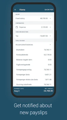 Visma Employee is a business app for your mobile device. It provides those currently receiving their payslip from various Visma payroll solutions with quick and easy access to their payslips. View your payslip on the go, when and where suits you. The app also contains an integration with Absence & Expense, so you can easily register sickness, send vacation requests and register all the other event types directly from the app. In the Expense section you can easily take photos of your receipts and create mileage expenses, and send them directly for approval.