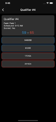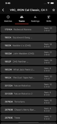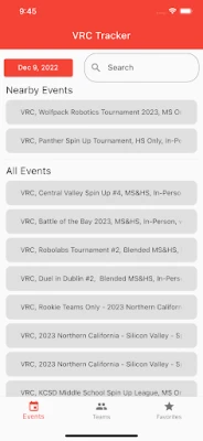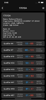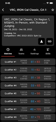 Features Include: - Live Competition Data (rankings, matches, teams) - Live Match Data (scores, times, etc) - Team Data (organization, competitions, rankings)