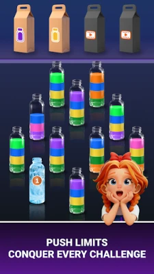 Use Tools: Stuck? Undo moves, shuffle colors, or add an empty bottle to keep sorting.