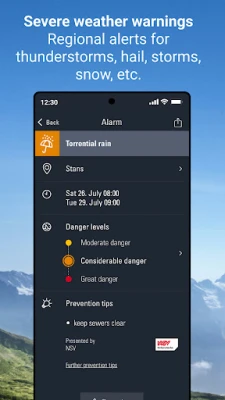 Warn your loved ones by sharing severe weather warnings via messenger, email and social networks or forward impressive images from live cams and personal alerts.