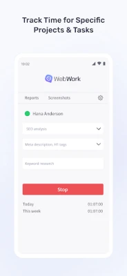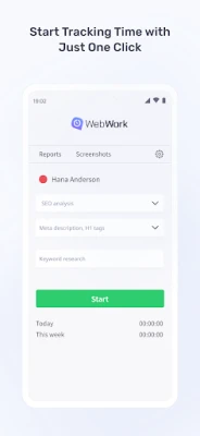 Note: The mobile app does not capture screenshots or measure productivity. For AI-powered analysis, distraction alerts, and detailed productivity insights, use the WebWork Desktop Time Tracker.
