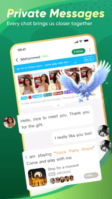 Make the room warmer with interactive features such as gifts, room effects, and rankings. Hop on the mic, react, and keep the conversation flowing.