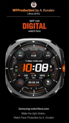 The WFP 329 Digital watch face is not only stylish, but also very functional. It provides detailed weather, health, and activity data, and offers a wide range of customization options for maximum convenience and personalization.