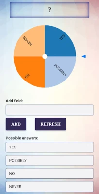 Each turn of the bike is an arbitrary choice. You can use the luck wheel to answer yes or no. Or to select a winner. Type yes or no for your answer. If you do not have enough fields, then add any number of them below.