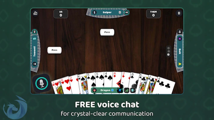 True partnership shines with communication! Coordinate bids and tactics with your partner using crystal-clear, free voice chat in casual online rooms. Or, use unlimited text chat and expressive emojis to share the excitement of every well-played hand.