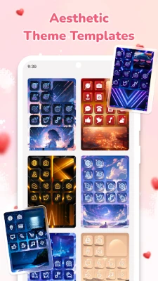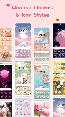 Apply matching themes with different styles, colors, and wallpapers for a consistent home screen appearance.