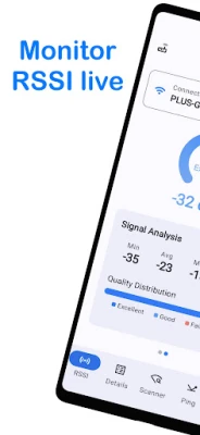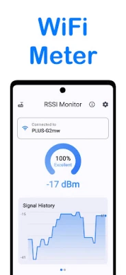 • Live Signal Monitor – Track your current WiFi RSSI value with real-time updates, signal graph, and detailed statistics.