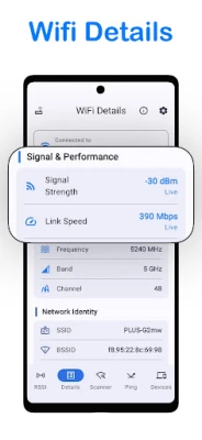 • WiFi Details – View full information about your connected network, including speed, channel, and security.