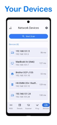 • Connected Devices – See all devices currently using your WiFi, with IP addresses and network details.