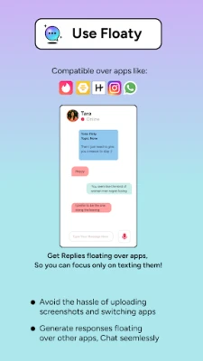 🔮Use Floaty: Generate responses floating over other apps, skip the hassle of uploading screenshots and switching apps