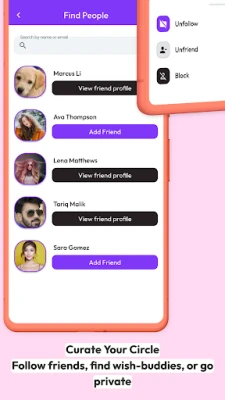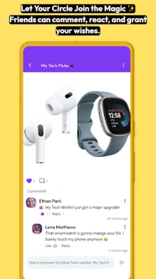 Engage & Share - Comment on your wishes and that of your friends making the platform interactive and inspiring.