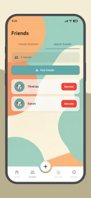 Search for friends, send requests, and view their wishlists.