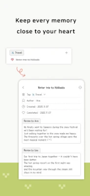 - Capture your feelings with reviews and save your precious memories.
