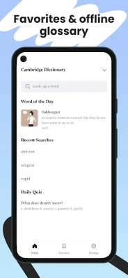 • Word of the Day: a fresh term with context sentence and pronunciation lands on your home screen daily.