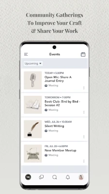 Our community offers gatherings like silent writing rooms, member readings, and author-led book clubs.
