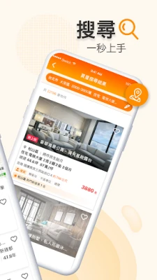 三秒 GPS 自動定位,立刻快搜所在地區鄰近出售、出租好屋,走到哪好房跟到哪。