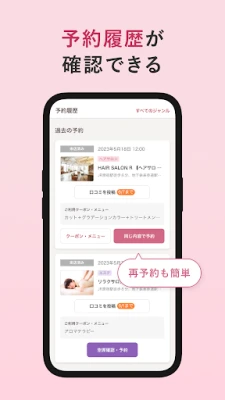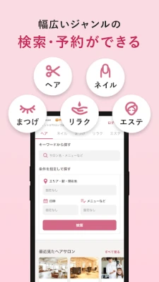 ヘアサロンやネイルサロン、エステサロンやリラク・マッサージも簡単に検索&予約できます。