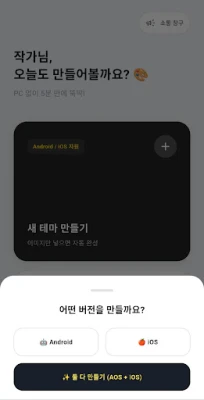 - AOS/iOS 동시 편집: 갤럭시(Android)와 아이폰(iOS) 테마를 따로 만들 필요가 없어요. 하나의 프로젝트에서 두 가지 버전을 동시에 편집하고 관리할 수 있습니다.