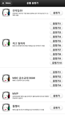 ─────── 주의사항 ─────── 프로야구 응원가는 네트웍으로 데이터를 받아오기 때문에 와이파이나 네트웍이 잘되는 곳에서 실행하시기 바랍니다.