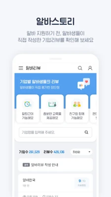 - 알바하고 싶은 곳의 평판을 확인할 수 있는 알바천국만의 기업평판스토리 서비스