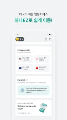 Conveniently use various services such as balance inquiry, remittance, and currency exchange on the Hana OneQ app.