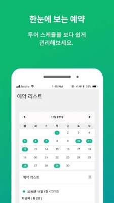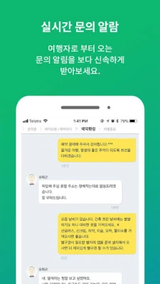 1. 문의 리스트를 한눈에 확인하실 수 있습니다. 2. 실시간으로 여행자와 대화 할 수 있습니다. 3. 예약 리스트를 캘린더 형태로 한눈에 확인 하실 수 있습니다. 4. 투어별로 스케쥴 관리를 보다 쉽게 설정 하실 수 있습니다.