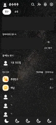 어두운 밤 배경에 반투명 말풍선이 있는 심플 카톡테마