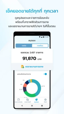 - แสดงยอดขาย รายการวันนี้, สรุปยอดย้อนหลังเป็นรายวัน/รายเดือน