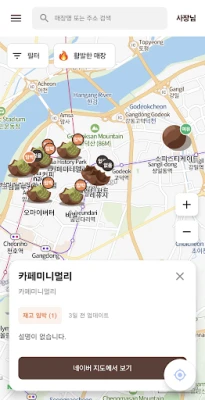 내 주변 두바이쫀득쿠키의 위치와 재고를 확인하고 저장하세요.