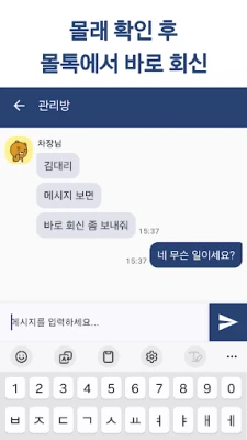 몰톡앱을 통해 카톡에서 1을 없애지 않고 상대방 몰래 카톡 메시지를 확인하실 수 있습니다. 더불어 상대방이 삭제했던 메시지도 몰톡에서 확인이 가능합니다.