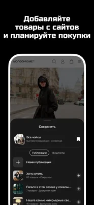 В «Чойс» вы можете организовывать сохраненные товары в различные подборки по интересующим вас темам. Составляйте подборки одежды для разных случаев или создавайте списки желаний, отправляйте идеи подарков друзьям или делитесь своим своим стилем и находками. Вдохновляйте других пользователей приложения и своих подписчиков новыми образами.