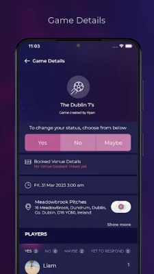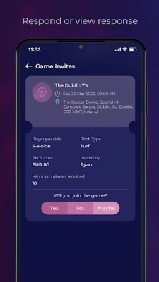 Invited Players can respond with a single tap - Yes/No/Maybe.