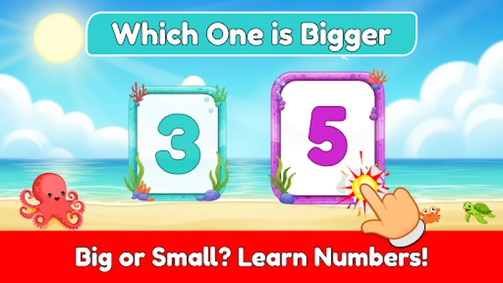 - Kids Math Challenges: Our learn 123 numbers kids games teach number comparison (Bigger or Smaller) and help kids explore counting, matching, and comparison in a safe space.