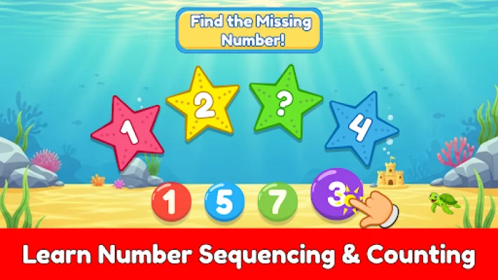 - Sequencing Challenge: Our 1234 counting game teaches order and logic by tapping creatures from smallest to biggest, or popping bubbles in a sequence.