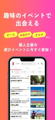 飲み会、カフェ会、食べ歩き、フットサル、バスケ、鬼ごっこといった多様なイベントが毎日毎時開催されています。その中から、興味のあるイベントに参加登録するだけ。