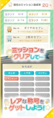ゲーム内のミッションをクリアしていくと、達成率に応じて称号が獲得できます。