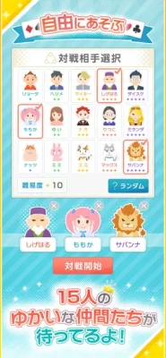 「自由にあそぶ」モードでは、用意されている15人の対戦相手の中からお好みの