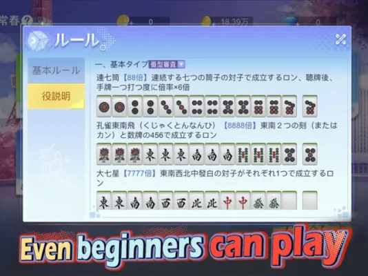 The simple operation and abundant assist functions allow even novice mahjong players to enjoy the fun of playing mahjong.