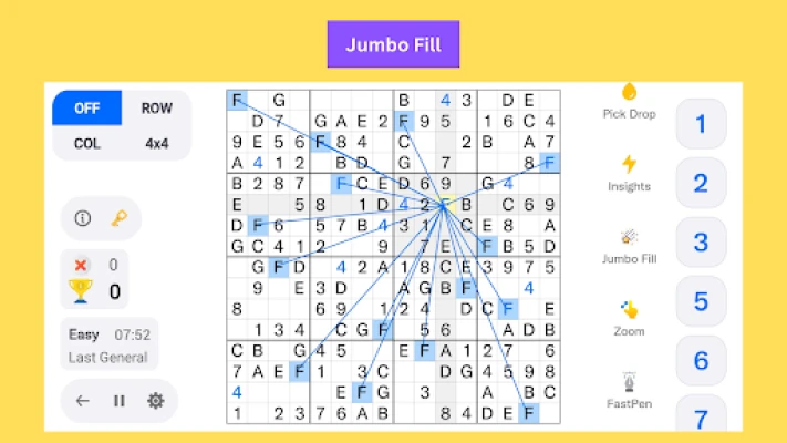 ✓ Jumbo Fill - An unique feature that strategically fills multiple cells at once.
