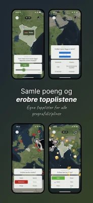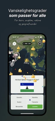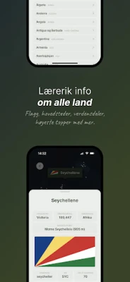 Her finner du en rekke geografiquizer og -utfordringer samt nyttig informasjon om alle land. Kjenner du igjen Latvias flagg? Hva er hovedstaden i Algerie? Vet du hvor mange innbyggere det er i Sør-Korea? Eller er du en av de få som vet hvor høyt Vanuatus høyeste fjell er? I denne engasjerende appen utfordres du i alle geografidispliner etter valgfri vanskelighetsgrad og kan registrere poengsummene dine på den nasjonale topplisten om du ønsker det. Hvem vet? Kanskje kan du mer enn Einar Tørnquist?