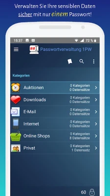 Eine Anleitung zur Passwort App finden Sie unter http://www.1pw.de/android/anleitung.php
