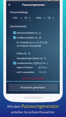 ★ integrierter Passwortgenerator mit umfangreichen Einstellmöglichkeiten zum Erstellen sicherer Passwörter