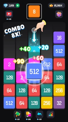 - Tap the screen and drop the block number on the right place where you can match them and let them merge with blocks into higher numbers to infinity x2