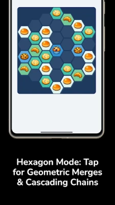 Tap to place tiles on a hexagonal grid! Strategic placement meets cascade chains in this innovative puzzle format. Create satisfying chain reactions with 2 and 3 tile merges.