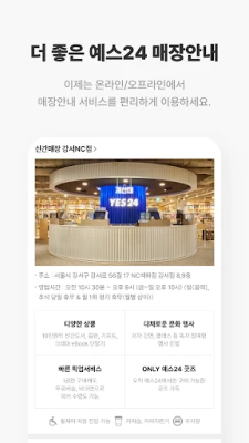 예스24의 다양한 기능을 쉽고 빠르게 앱에서 사용해보세요:)