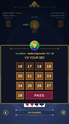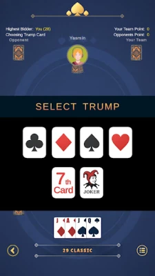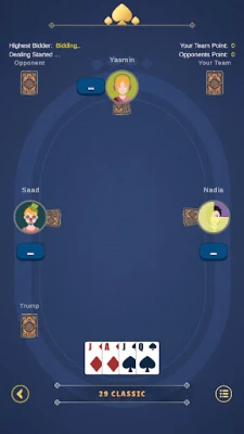 Bidding & Trump System – just like the real 29 card rules.