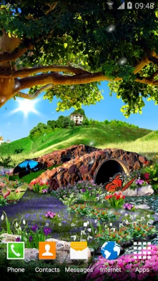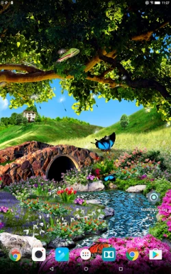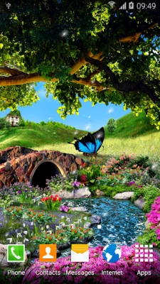 Animated 3D butterflies, amazing spring landscape with myriads of flowers, live stream that flows under a sprawling tree, animated clouds and dandelion seeds. All this and even more can be found in these amazing free 3D live wallpaper. Install it, and it will give you the feeling of a sunny summer day, the coolness and freshness in the shade near a rapid stream. Enjoy the beauty of the flower meadow. See how gracefully fly real 3D animated butterflies. This live wallpaper will be a perfect decoration for your phone or tablet and will please you for a long time.