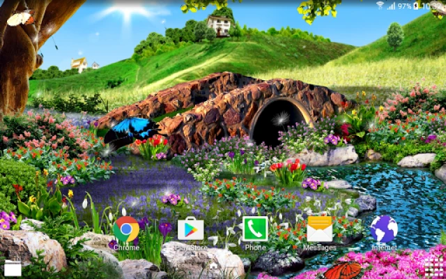 MAIN FEATURES: - HD spring landscape - Colorful 3D animated butterfly - Water animation - Animated dandelions, falling leaves and clouds - This free spring 3d butterfly live wallpaper supports horizontal orientation and looks great on both mobile phones and tablet devices and supports screen switching and all screen resolutions - This free HD wallpaper app sleeps while your phone is inactive, so it will not drain your battery (low power consumption)